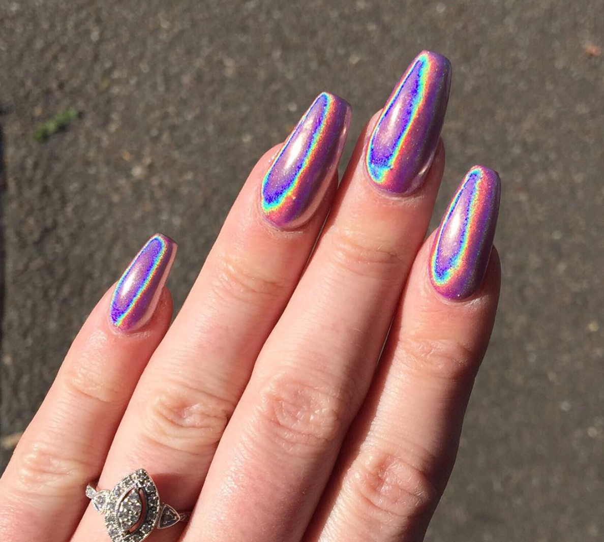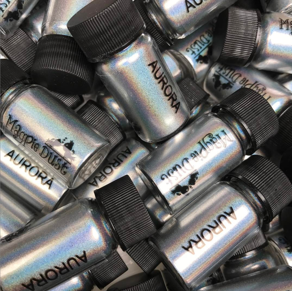 Aurora is an ultra fine silver holo chrome. This chrome is like a unicorn... it changes depending on the background color! Apply this chrome with the Magpie Chrome Tool. DO NOT rub holo chrome with a silicone tool as it will scratch the chrome.