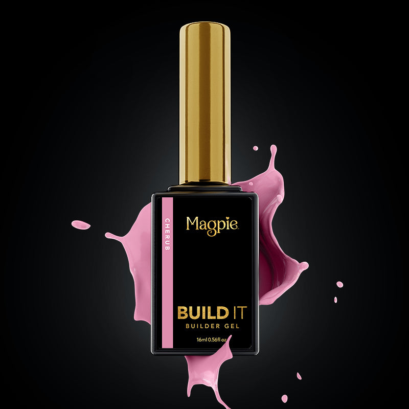 2. For the first layer, like you would base coat. Apply BUILD IT thinly, making sure to seal every free edge and cure for 60 seconds in your Magpie Lamp. If preferred you can switch this step to any Magpie Base. There should be no product touching the cuticle area or side walls. Use the Magpie Sir tool, to clean up any areas if needed.