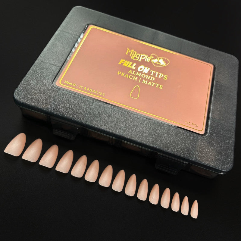 ‘FULL ON’ TIPS are available in both ALMOND, TAPERED SQUARE, SHORT ROUND AND SHORT SQUARE.