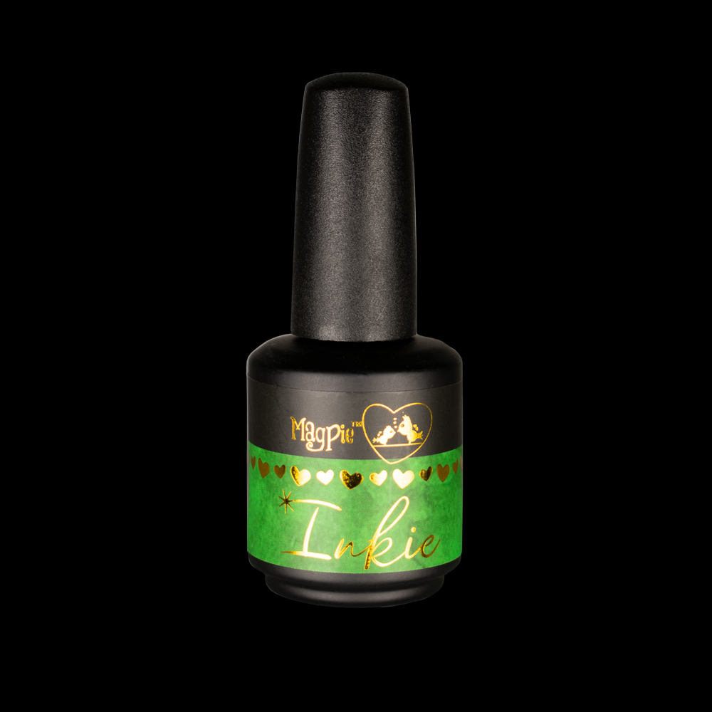 Magpie Alcohol Inkies are a water like consistency. Inkies are used for Nail Art and Design. Perfect for creating marble, watercolour, or tie dye effects. Apply either into a cured tacky inhibition layer or onto a matte finish for your desired look. Disperse the colour by using the clear Inkie. Be careful when using to prevent product spilling from the bottle.
