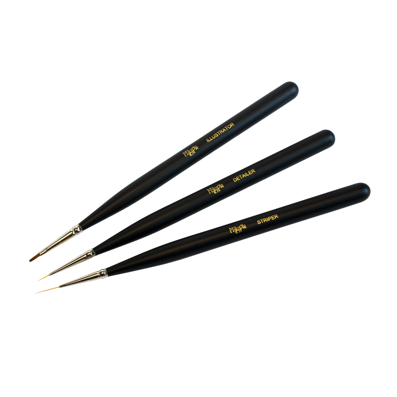 The TRI-FECTA of nail art brushes! Includes 3 brushes with 3 gold lids.