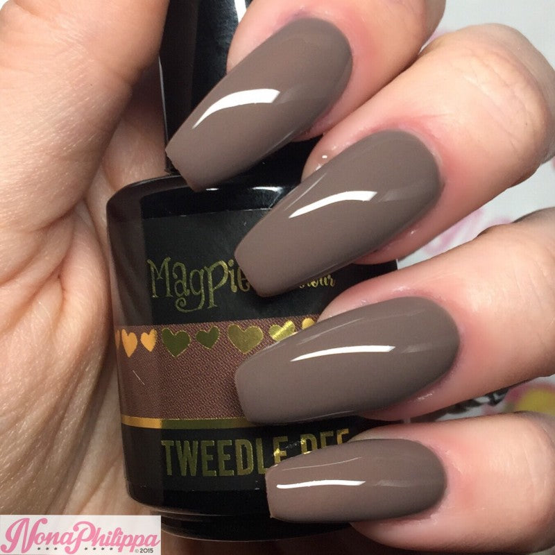 Tweedle Dee is a deep greige - grey beige.